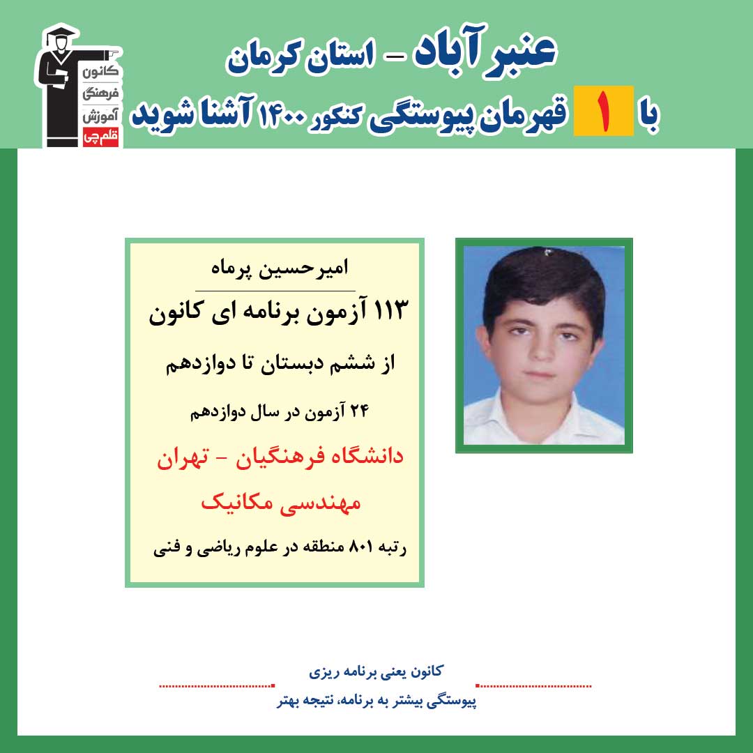 رتبه های برتر کنکور 1400 عنبرآباد