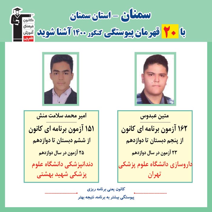رتبه های برتر کنکور سمنان