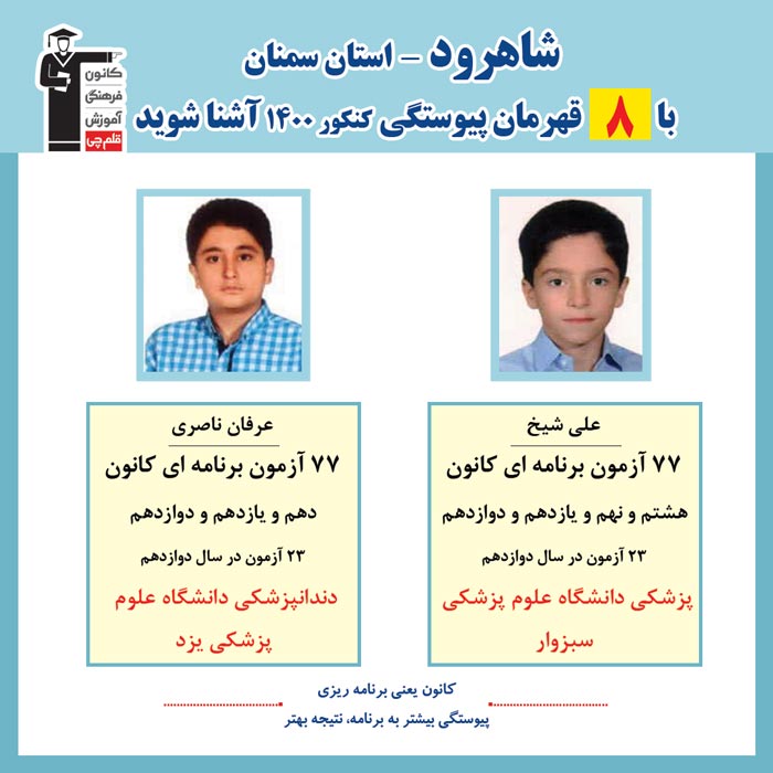 قبولی های تیزهوشان و نمونه دولتی (نهم) سال 1400 شاهرود