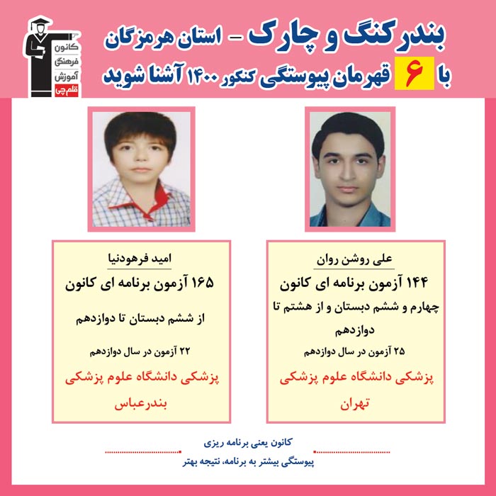 رتبه های برتر کنکور 1400 بندر کنگ و چارک