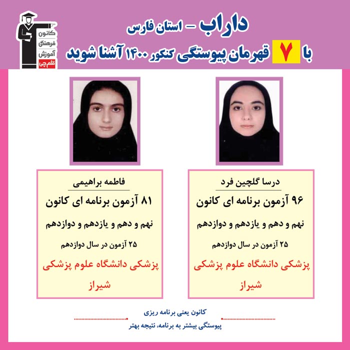 قبولی های تیزهوشان و نمونه دولتی داراب 1404