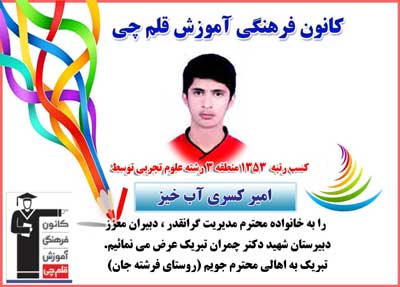 کسب رتبه 1353منطقه 3 رشته تجربی توسط امیرکسری آب خیز
