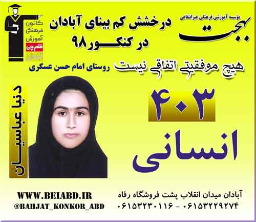 قبولی های تیزهوشان (ششم) سال 98 آبادان