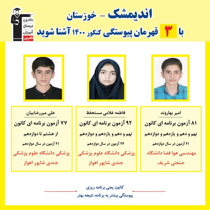 قبولی های تیزهوشان و نمونه دولتی (نهم) سال 1400 انديمشك