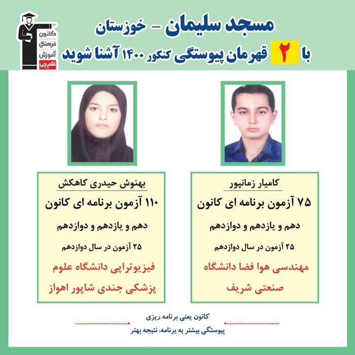 رتبه های برتر کنکور 1400 مسجدسليمان