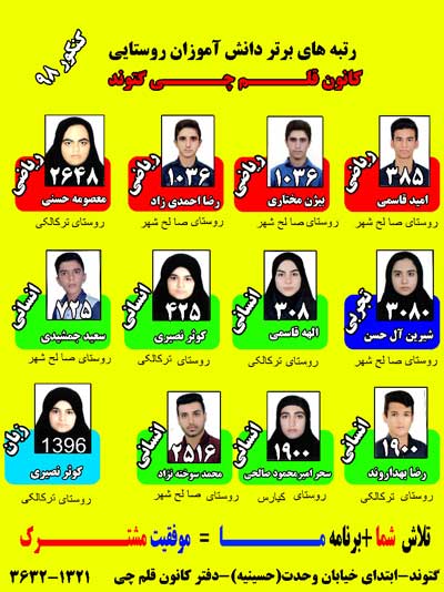 رتبه های برتر کنکور گتوند