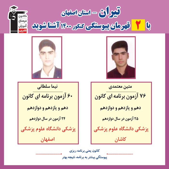 با 2 نفر قهرمانان پیوستگی تیران درکنکور 1400 آشنا شوید