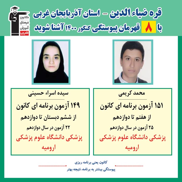 رتبه های برتر قرهضياءالدين کنکور 1404
