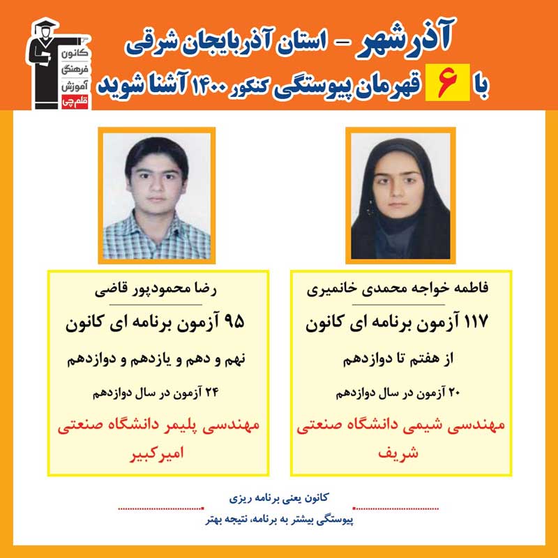 قبولی های تیزهوشان و نمونه دولتی (نهم) سال 1400 آذرشهر