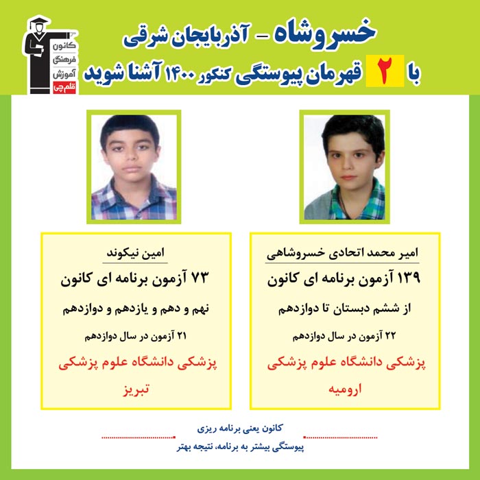 با 2 نفر قهرمانان پیوستگی خسروشاه در کنکور 1400 آشنا شوید