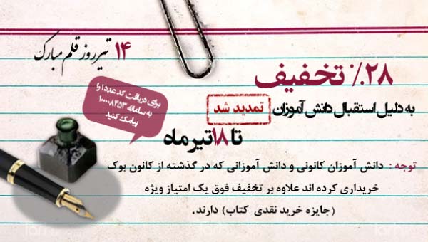 روز قلم مبارک : تخفیف ویژه در سایت کانون بوک