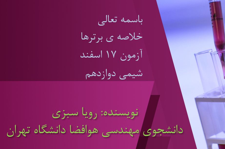 خلاصه شیمی دوازدهم مختص آزمون 17 اسفند