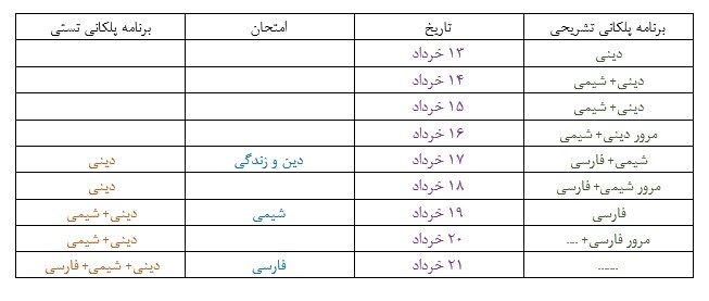 تبدیل جدول صفحهی 182 دفتر برنامهریزی به جدولی کاربردی