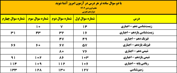 دو سوال سادهی هر درس آزمون18فروردین کدام بودند ؟(همه گروه ها)