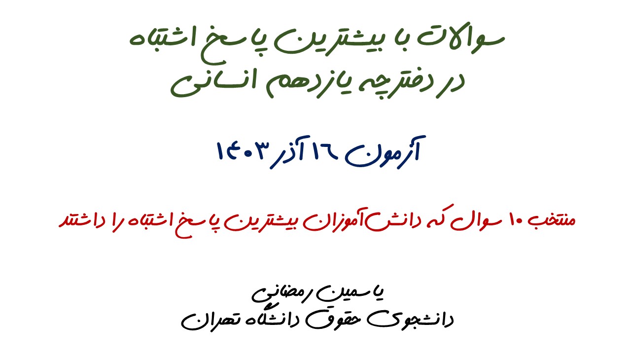 سوالات با بیشترین پاسخ اشتباه آزمون 16 آذر، یازدهم انسانی + تحلیل