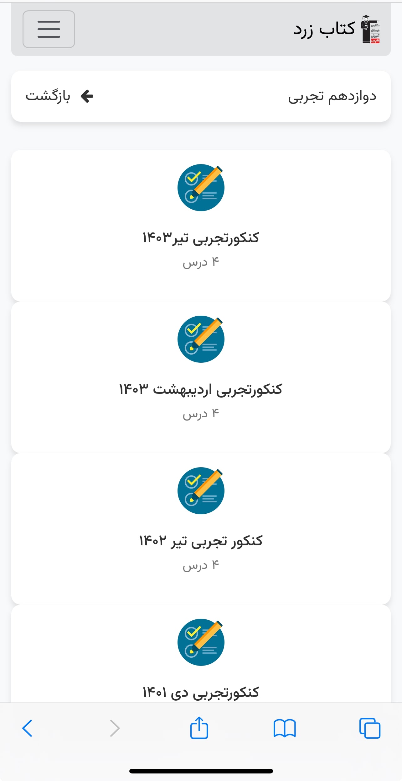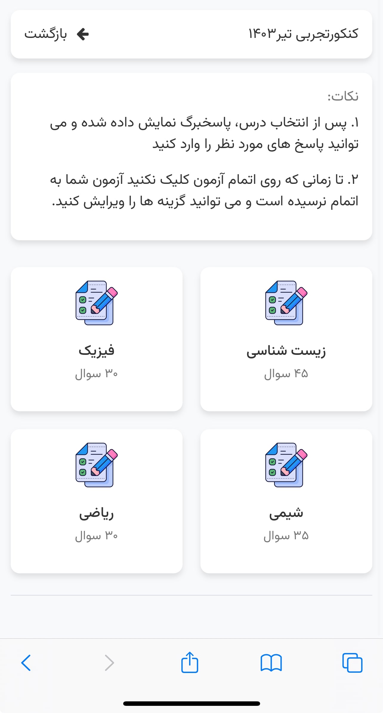امکان شرکت در کنکور و محاسبه درصد و مشاهده فیلم هر سوال